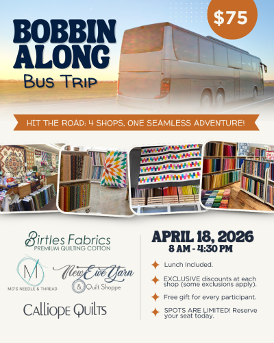 Contact: New Ewe Yarn & Quilt Shoppe for dates & details.